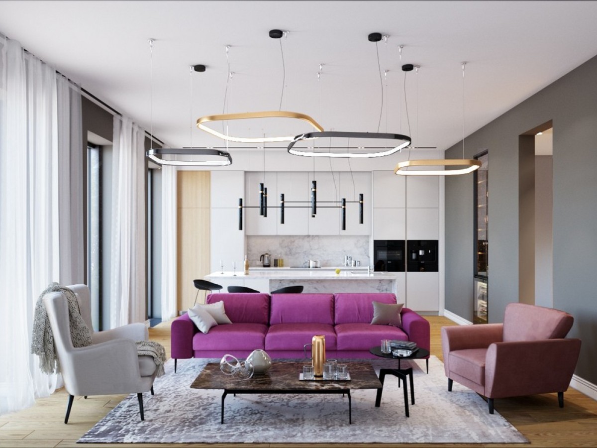 Оформить гостиную в яркой гамме в оттенках Pantone рискнет не каждый, но создать центр притяжения и поставить диван в сочной обивке или расставить акценты и добавить подушки в трендовом цвете – запоминающееся решение, которое не надоест в скором времени. К тому же, декор можно легко обновить в зависимости от сезона или желания. Яркие насыщенные цвета мягкой мебели – кобальтовый, изумрудный, горчичный – создают позитивное настроение в пространстве. Такая цветотерапия – эффектный и оригинальный ход в интерьере для открытых, общительных людей, экстравертов, ведущих активный образ жизни, смелых и решительных. Кроме того, в северных интерьерах сочные и контрастные решения – это способ компенсировать недостаток солнечного света и создать свою «погоду в доме».