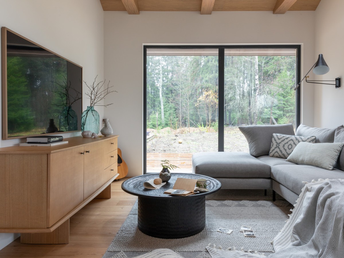 Проект дома, расположенного в окружении соснового леса, вблизи озер Ленинградской области, вдохновлен окружающей природой, а также скандинавским подходом к функциональности и честности интерьеров. Дизайнеры Smart Small Flat хотели создать спокойный, уютный и лаконичный интерьер, который не наскучит владельцам, подчеркнет и отразит их интеллектуальность и легкость. Это первое совместное жилье для молодой пары, занятой в сфере IT. Самым главным пожеланием заказчиков стала функциональность. Владельцы работают удаленно, поэтому очень важно было организовать функциональный кабинет с двумя рабочими местами.