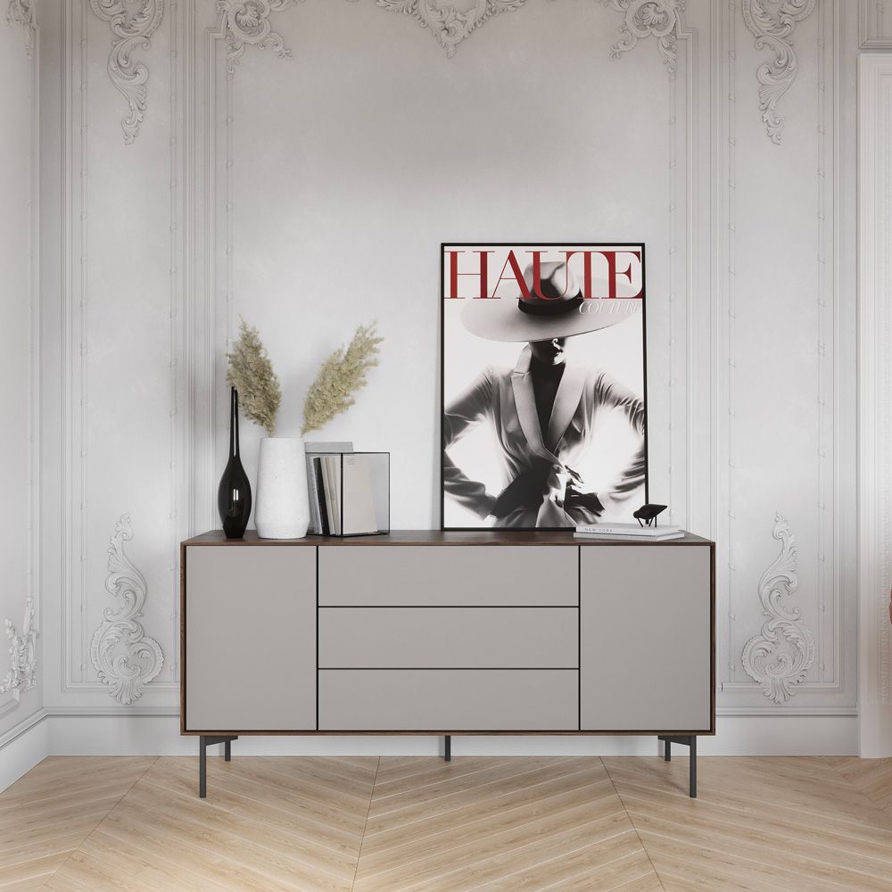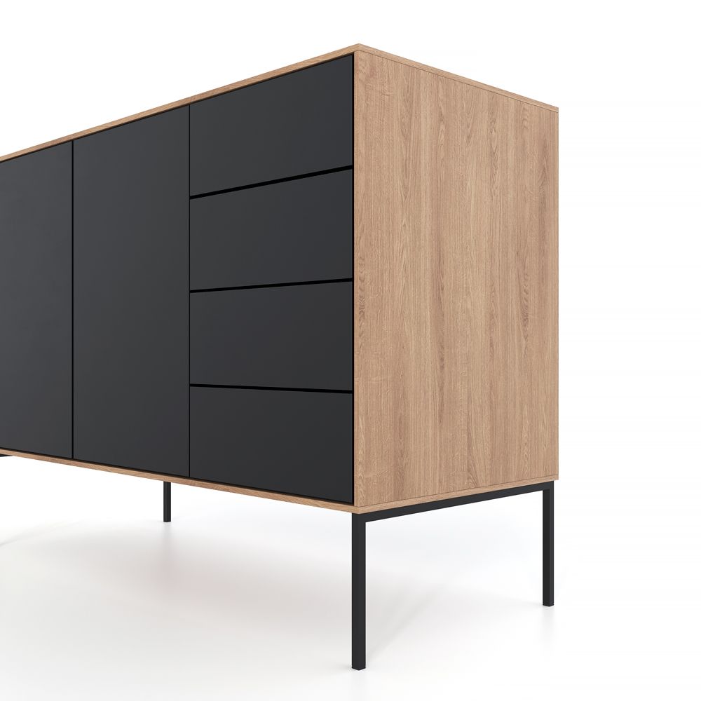 Коллекция комодов LAHTI напоминает конструктор: можно не только выбирать подходящую высоту и ширину системы хранения, но и комбинировать дверцы и ящики – форму, размер, материал и цвет фасадов. Стильные комоды на тонких металлических ножках – это коллекция современных систем хранения, которые подстраиваются под индивидуальные потребности, стиль интерьера и планировку помещений. Коллекция включает три линейки, отличающихся по высоте: High (99 см), Medium (79 см) и Low (59 см). В каждой линейке представлен набор комодов разной ширины – 161, 121 и 81 см. Внутри размерного ряда доступны комбинации выдвижных ящиков и распашных дверей. Стандартные модули оснащены механизмом Push-to-Open, который позволяет открыть дверцы или выдвинуть ящики одним нажатием. Корпус комодов выполнен из шпонированного МДФ в тонировках «дуб», «черный дуб», «орех», «тик». Фасады могут быть изготовлены из крашеного МДФ или МДФ с покрытием Soft Touch. Стандартная палитра включает белый и черный цвета, но при необходимости фасады могут быть окрашены в любой оттенок по каталогу RAL и NCS. Минималистичный язык дизайна LAHTI универсален для разных пространств. Тонкая линия корпуса подчеркнута благодаря контрастному сочетанию натурального дерева и цветных фасадов. Изящные ножки придают комоду легкость и облегчают уборку.