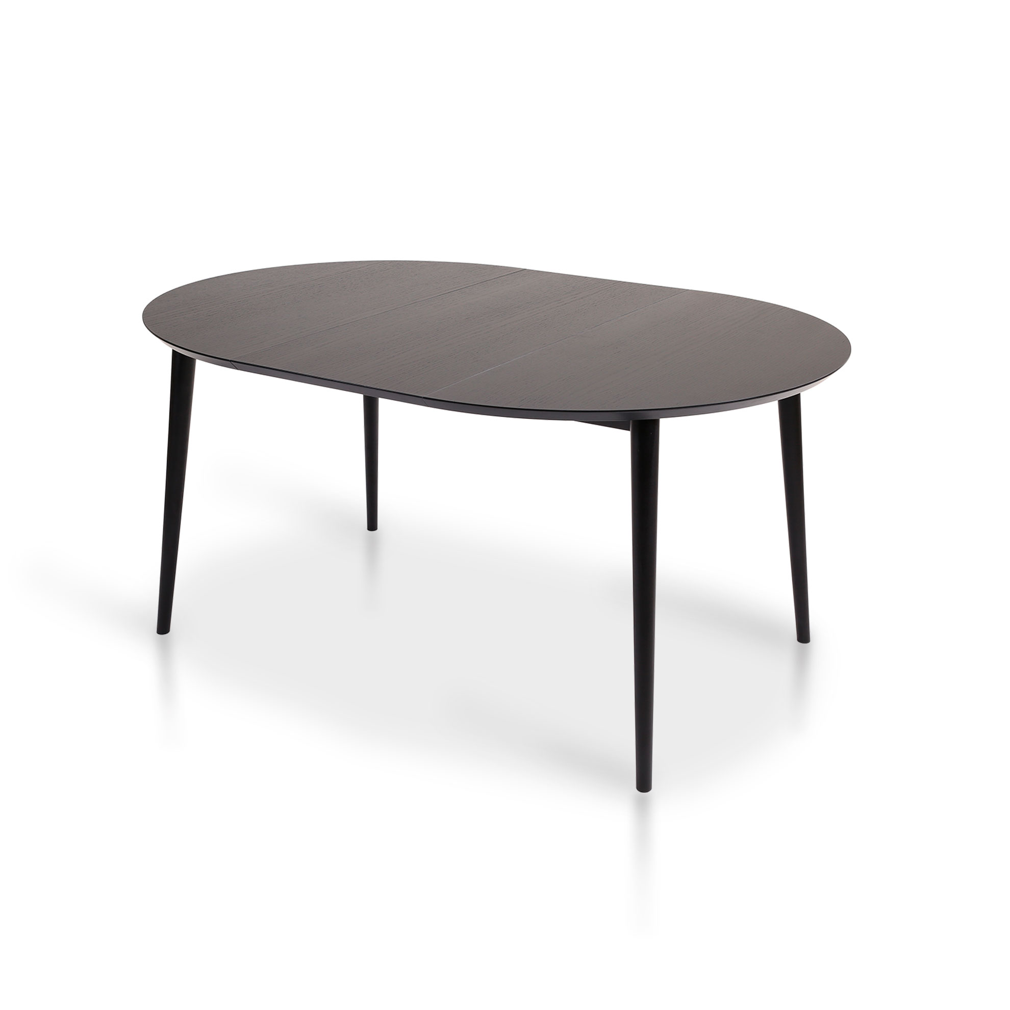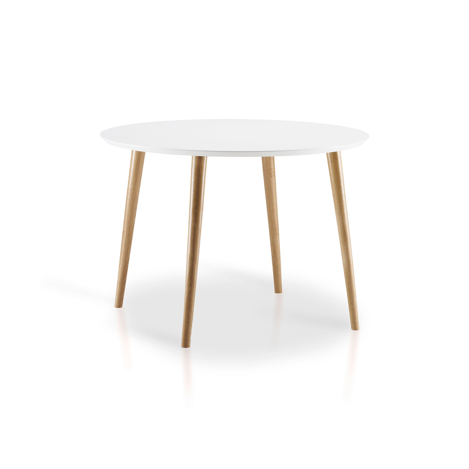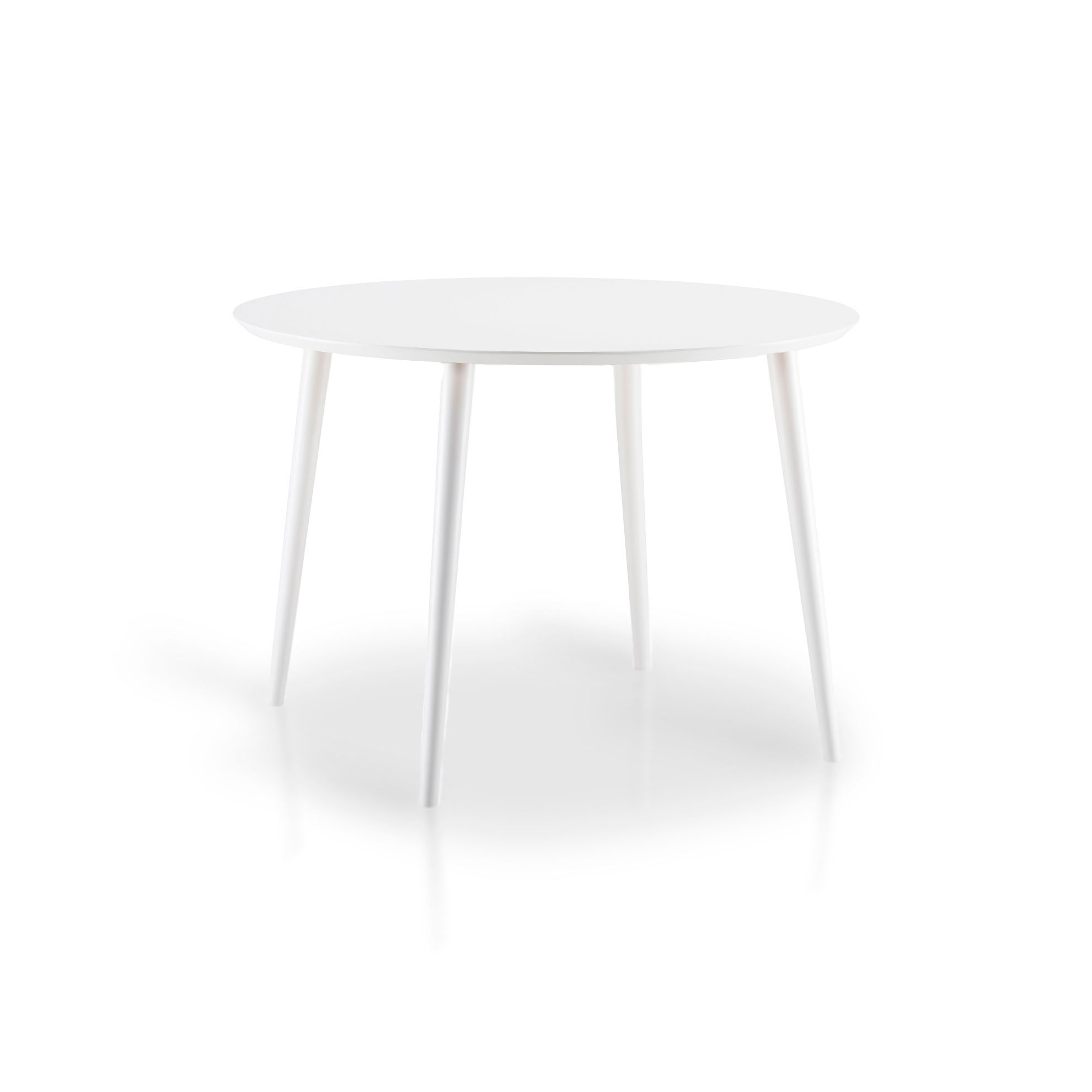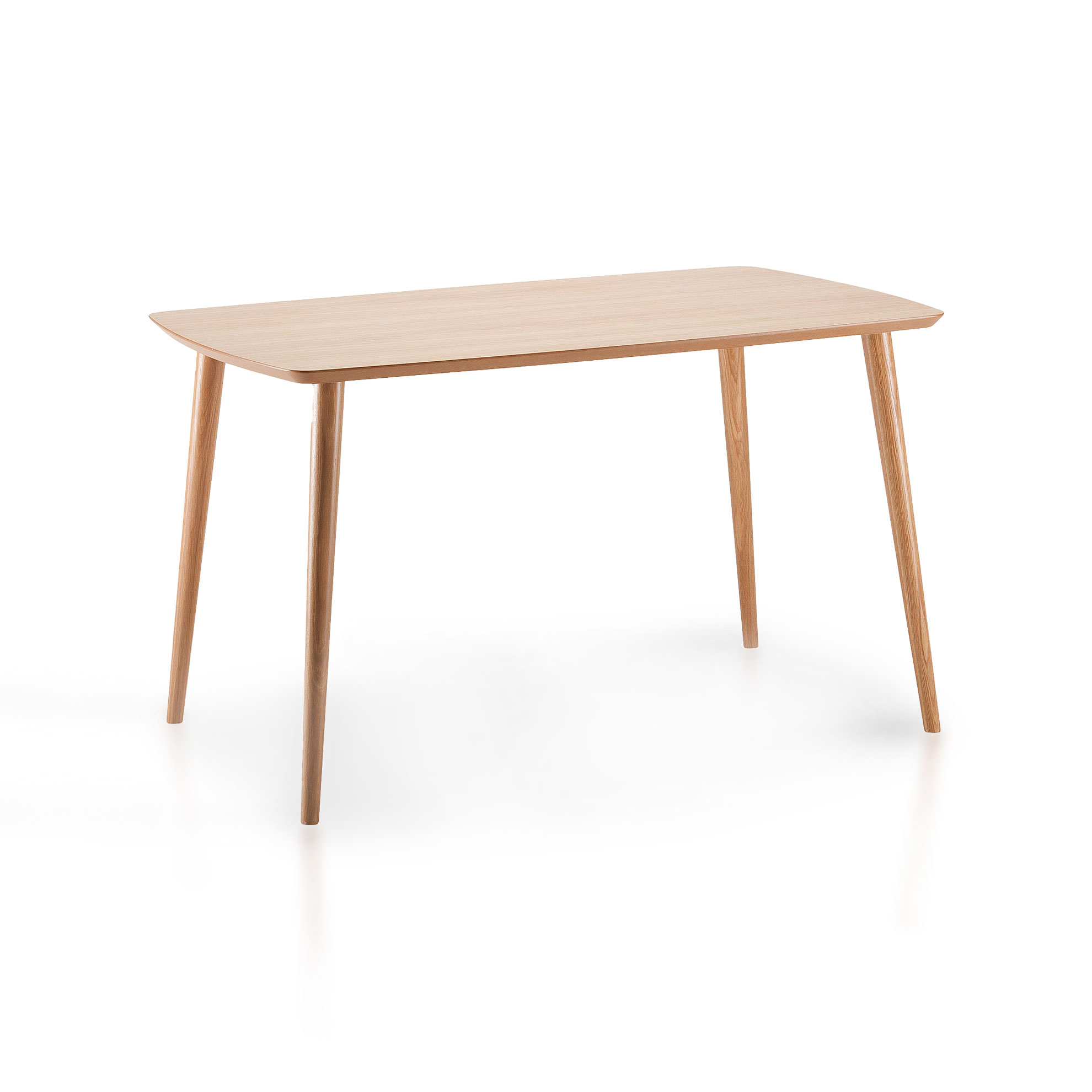 Классическая скандинавская коллекция для обеденной зоны: круглые или прямоугольные столы на утонченных ножках в различных тонировках, стулья со спинкой из реек и скамьи.