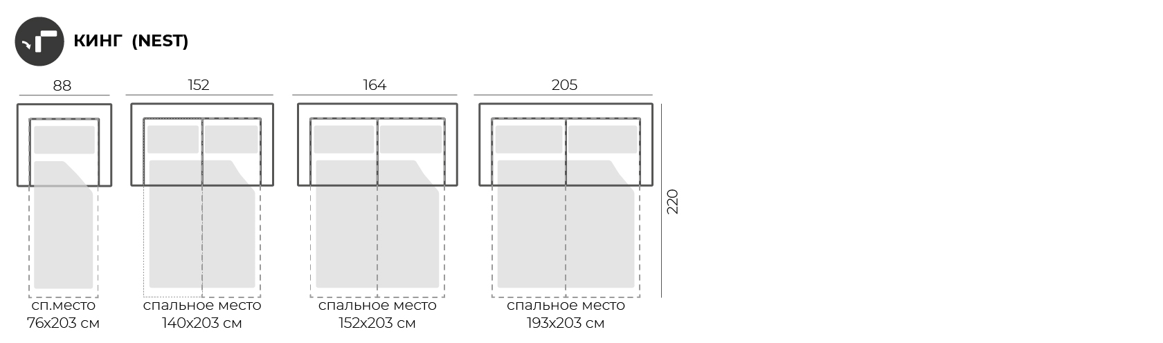 Благодаря механизму раскладки «Кинг» (Nest), который можно установить как в диван, так и в кресло, легко организовать дополнительные спальные места.
