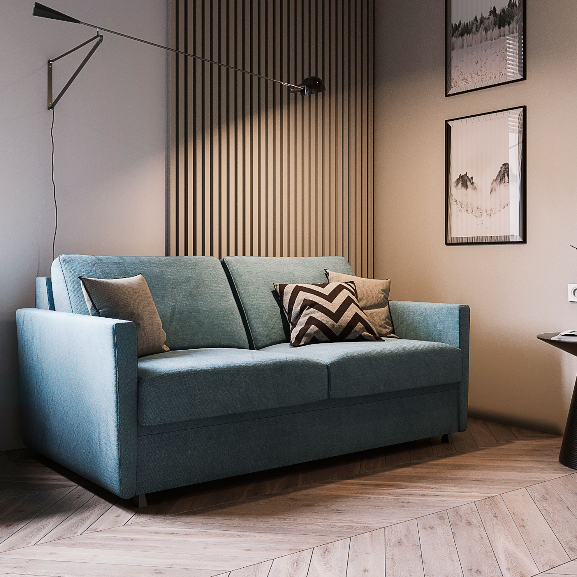 Лучшее для сна – это кровать. HUGO – это кровать, которая превращается в стильный диван и обратно. Модели с механизмом NEXUS укомплектованы матрасами, поэтому предназначены для ежедневного сна. Присмотримся к геометрии: компактный диван с уверенными, четкими линиями несъемных подушек. С широким, прямым подлокотником подчеркиваются пропорции и правильность форм. Вся геометрия усиливается, и модель выглядит еще более основательной. Ножки под таким подлокотником низкие и широкие, но просматриваемость сохраняется: диван приподнят над полом.