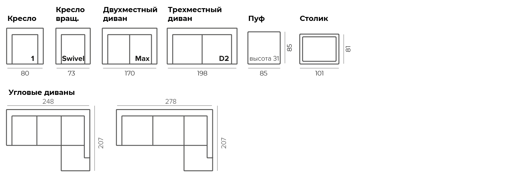 Коллекция включает готовые модели мягкой мебели для комплексных решений и отдельные модули – для индивидуальных проектов. Диваны могут быть оснащены двумя видами спальных механизмов.