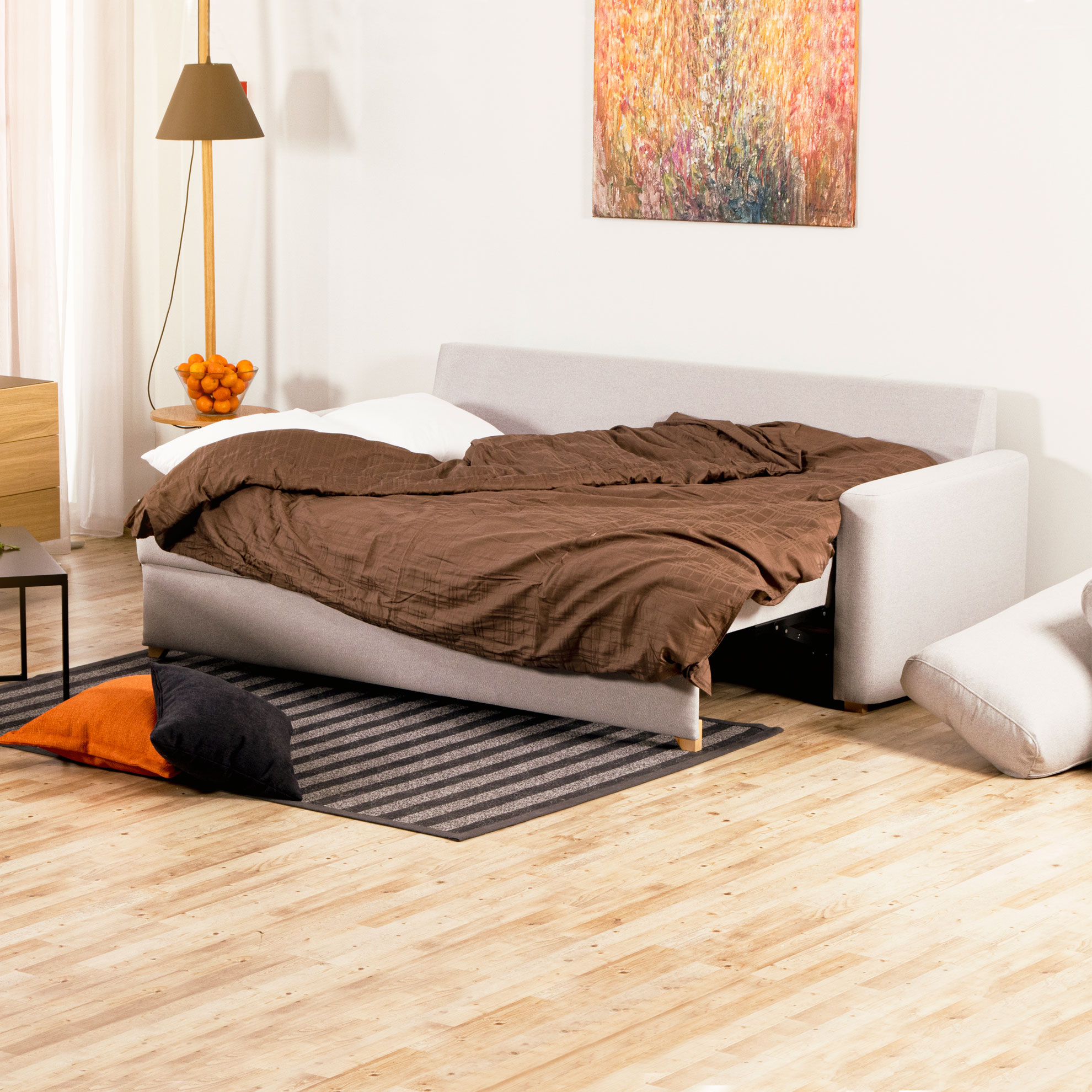 Модели коллекции RAIMO объединяет простая и аккуратная геометрия прямоугольных форм, мягкая панель вдоль основания, невысокие ножки и встроенный механизм трансформации.