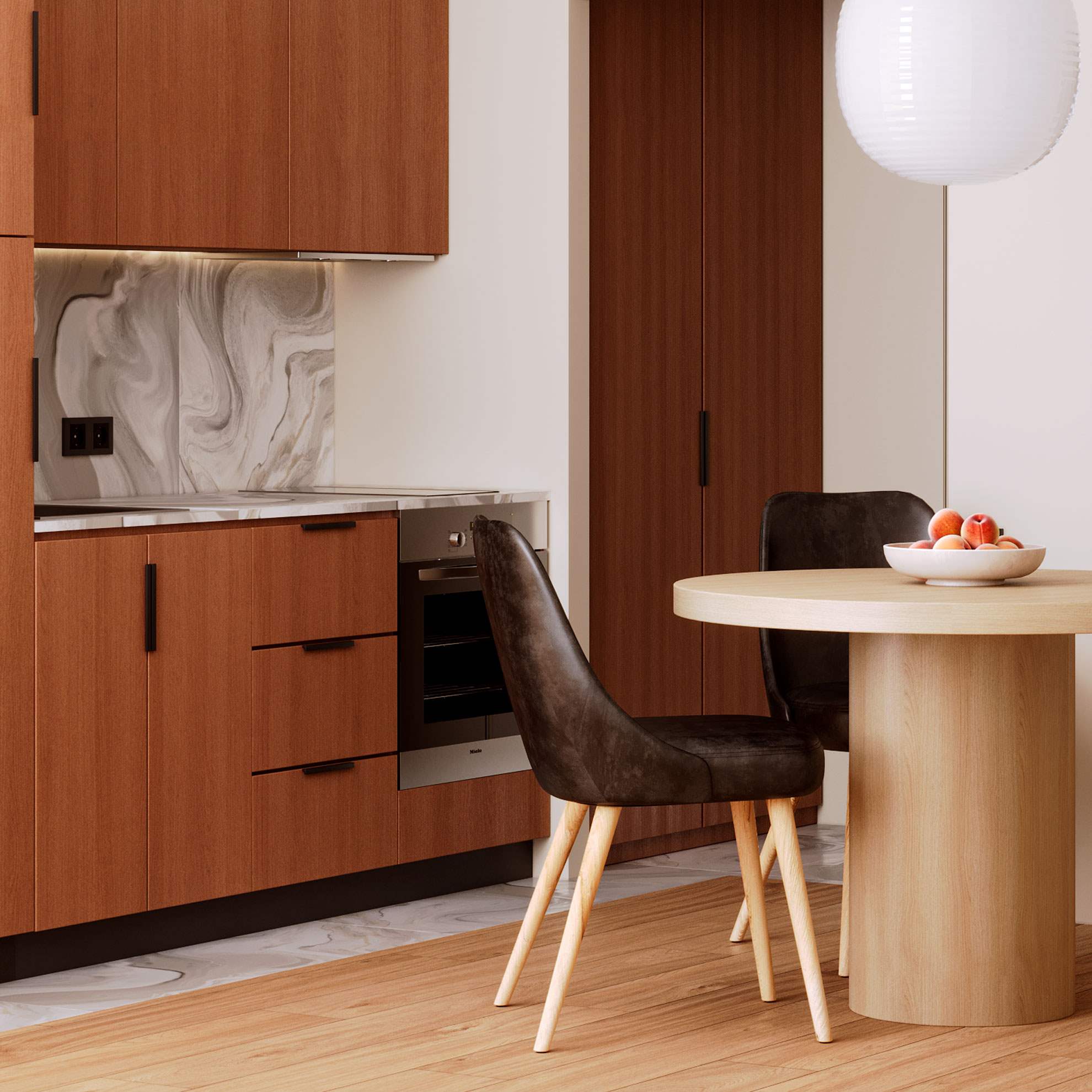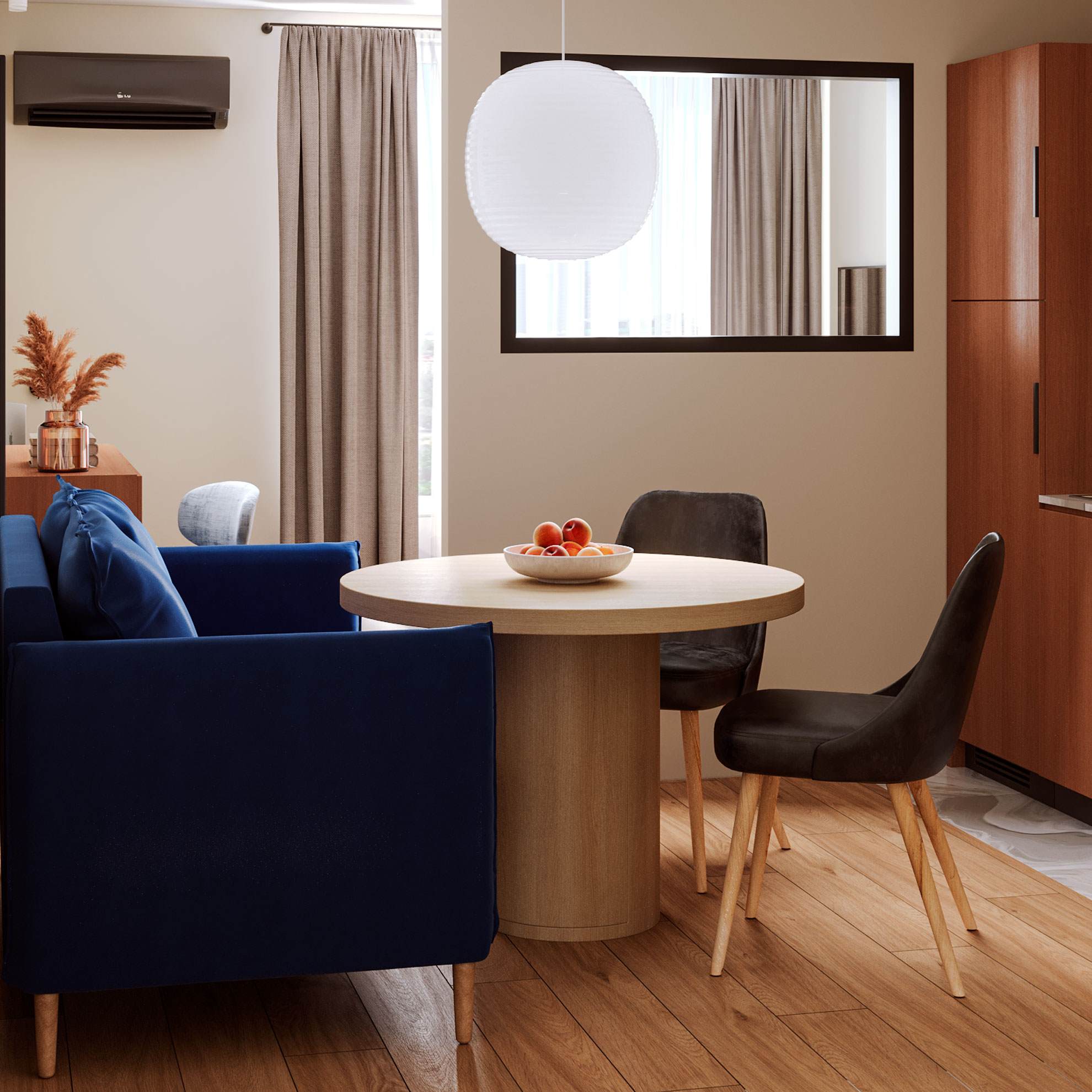 Коллекция обеденных столов и стульев вдохновлена формой круга. Плавные линии смягчают рисунок столовой зоны и создают уютную атмосферу.