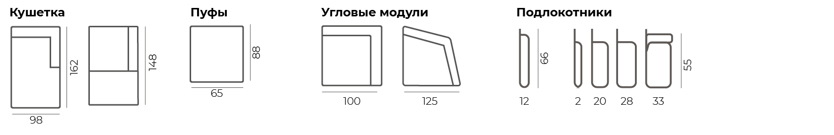 Кушетки, пуфы, угловые модули и подлокотники